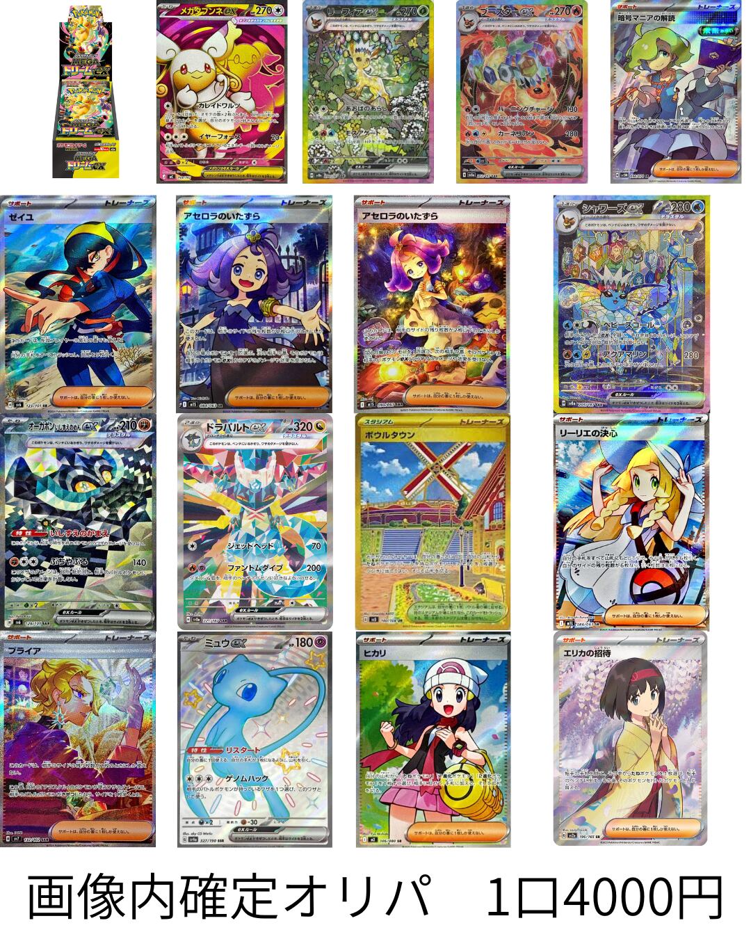 ●オリパ作成前に検品でカードを厳選しており、基本的に状態は良好ですが、中には初期キズ、キズがある場合がございます。そこを承知の上でのご購入をよろしくお願いします。